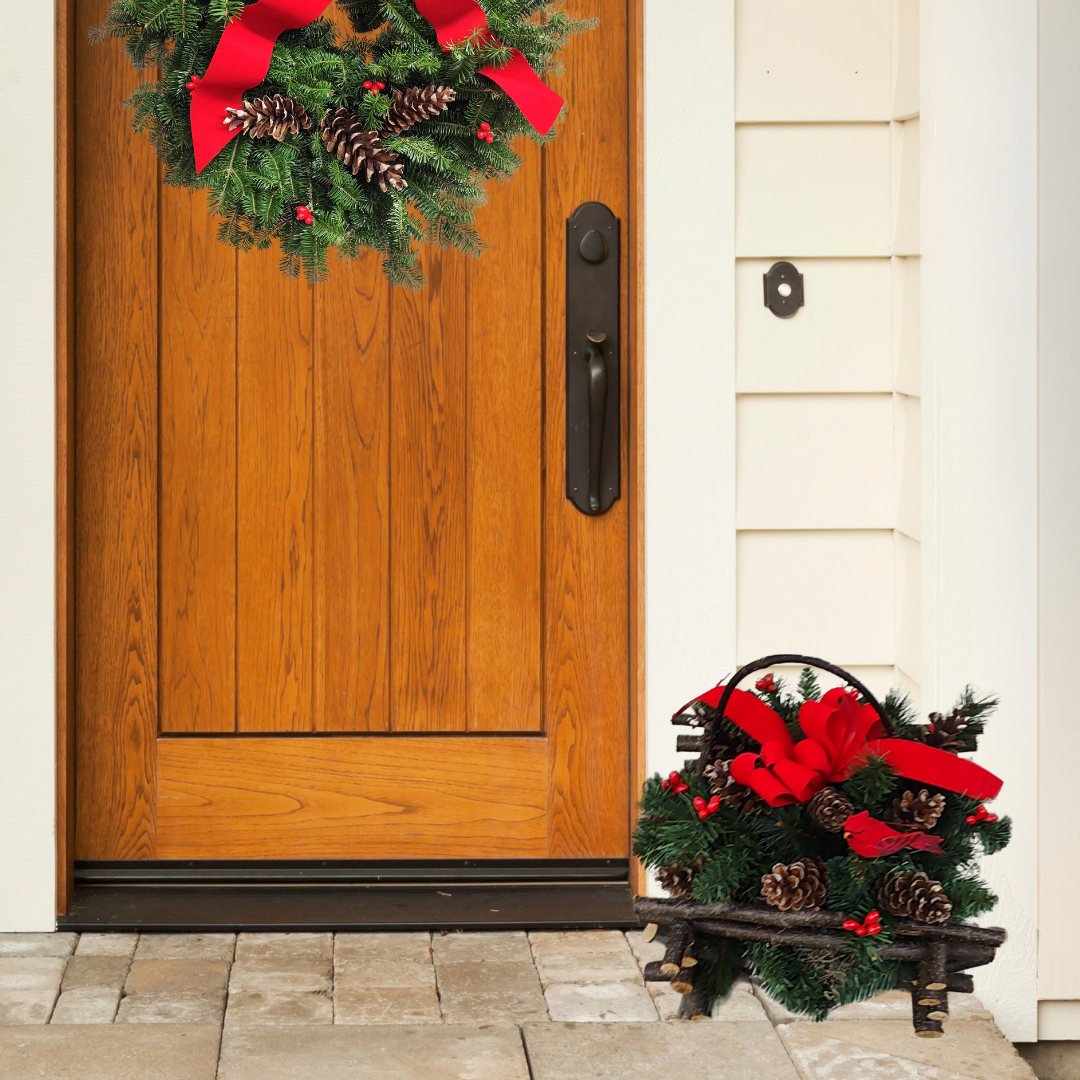 Bring nature indoors with this cozy woodland-inspired arrangement. Nestled in a handcrafted twig basket, lifelike evergreens are accented with pinecones, red berries, and a cheerful cardinal perched among the branches. Finished with a bright red bow, it’s a heartwarming addition to any holiday décor and makes a thoughtful seasonal gift.